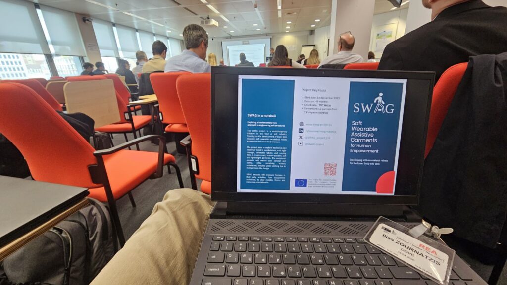 BENDABL’s presence at the event offered an important opportunity to present SWAG within the wider European robotics landscape and to contribute to discussions on the future of human-centred assistive technologies. As a Greek partner in the SWAG consortium, BENDABL is helping advance a new generation of soft wearable assistive garments that aim to support the lower body and core through lightweight, comfortable and intelligent exosuit technologies. SWAG focuses on replacing rigid exoskeleton components with inflatable fabrics and sensing films in order to create wearable robotic systems that are soft, adaptive and nearly invisible under clothing.